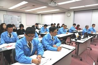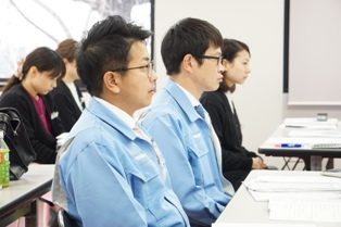 仲間の発表を真剣に聞く社員。