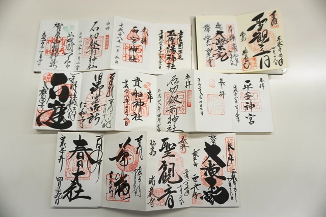 私が集めているものは御朱印です。以前旅行で訪れた神社で御朱印帳を持っている方を見かけ、「旅の思い出になる」と思い集めだしました。最近は若い女性のあいだでもブームになっており、多くの寺社がオリジナルで個性的な御朱印帳を用意されています。御朱印の起源は、寺社へ写経を納めた際の受付印であったとされています。現在では参拝した証として御朱印をいただけます。その御朱印をもらうために使用するのが御朱印帳です。私も神社や寺院に行った際は御朱印を書いていただいています。一番気に入っているのは世界遺産に登録されている熊野速玉大社の御朱印です。