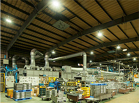 ・「水銀灯特有の熱が無くなり、夏場の作業エリアの体感温度が下がったことで、空調の効きも良くなり、作業者からも『少しラクになった』と好評です。」