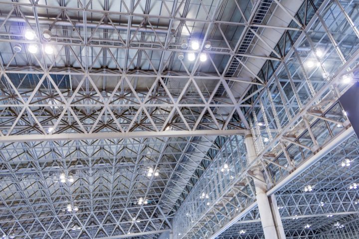 特に、高天井空間に吊り下げられている水銀灯の器具や配管類は、落下や変形のリスクがあるため、支持の状態を確認し、必要に応じて補強や更新を行うことが重要な課題でございます。