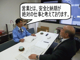弊社は、2011年4月20日にISO9001の認証登録を行いました。そして本年は、1年次定期サーベイランス審査を行いました。品質マネジメントシステムが規格要求と品質マニュアルの要求事項を満たし、運用・維持されていることを“日本環境認証機構”森澤主任審査員様に確認して頂きました。