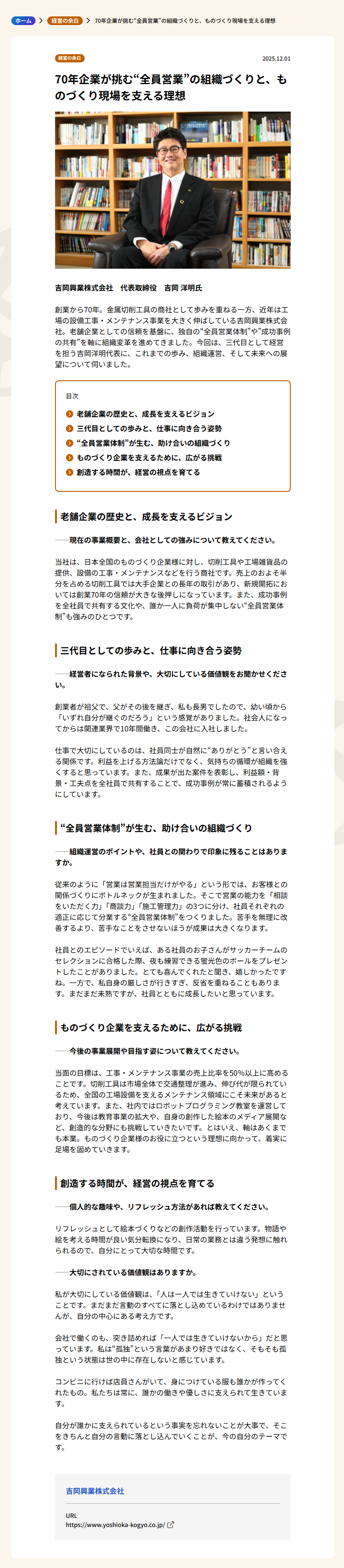 2025年12月1日に、経道にて、弊社代表取締役 吉岡洋明の記事を取り上げて頂きました。