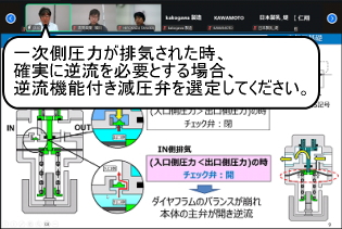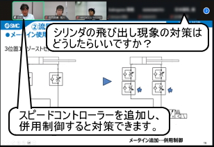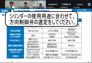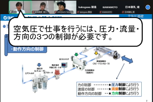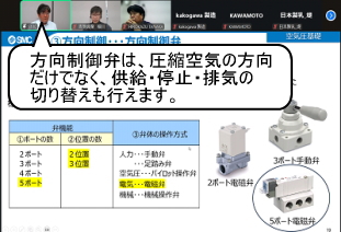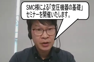 この『技術セミナー営業』のひとつである“生産技術オンラインセミナー”の模様をレポートいたします。“空気圧機器の基礎”と銘打ち、“SMC”マーケティング部 営業技術課 田代様を講師にお招きし、お客様と吉岡興業をオンラインで繋いで、「空気圧機器の基礎」について分かり易く講義いたしました。