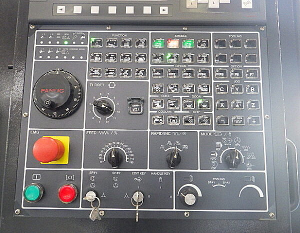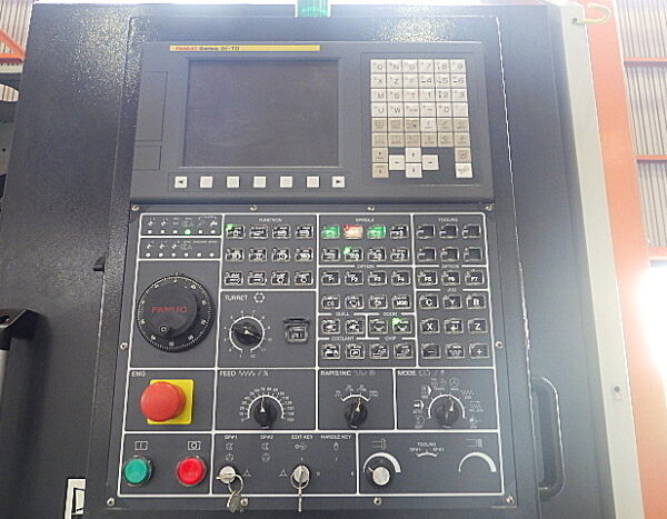| 機械仕様 | FANUC0i-TD 15吋3爪チャック 主軸回転数2000rpm 12角タレット ストロークX305 Z500 最大振りφ650 最大加工径φ600 最大加工高さ500mm 最大ワーク積載質量1000kg チップコンベア付 |